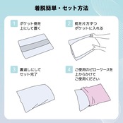 上下のかぶせを枕に引っ掛けるだけで着脱簡単な、洗濯時にも水がたまりにくい天地パック式。